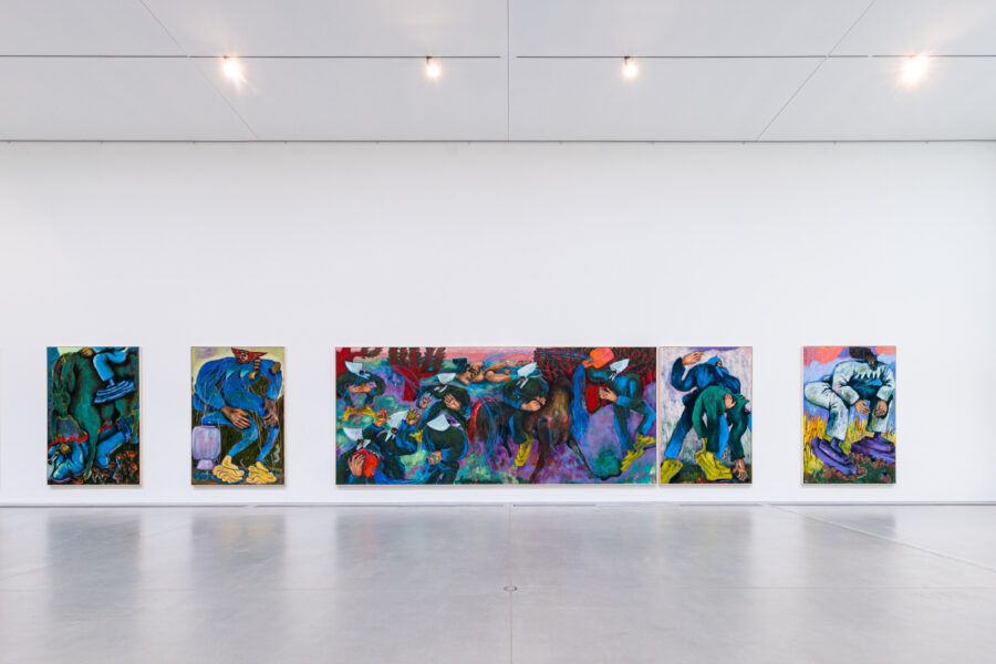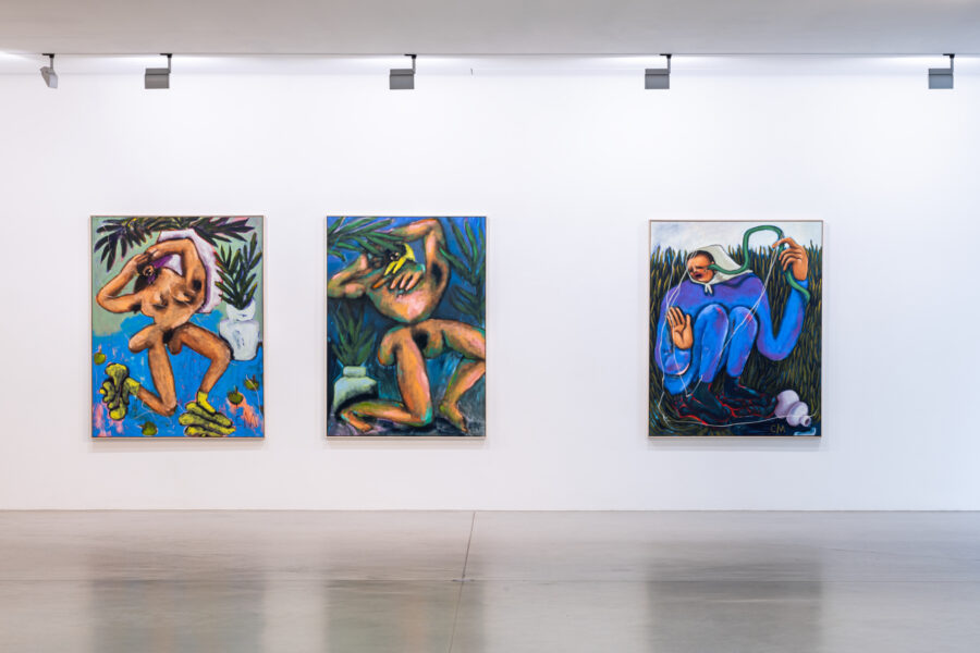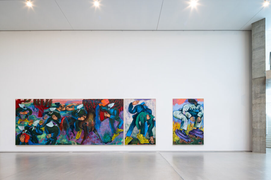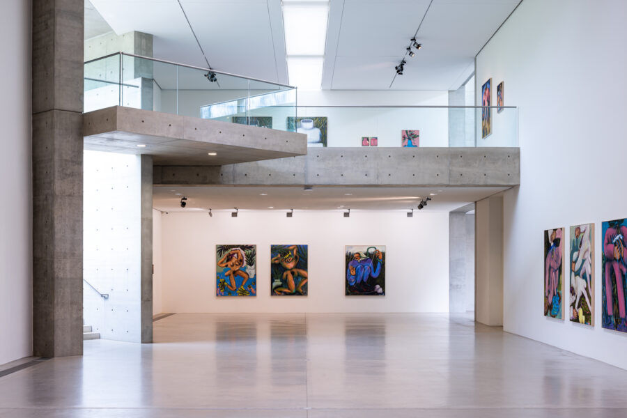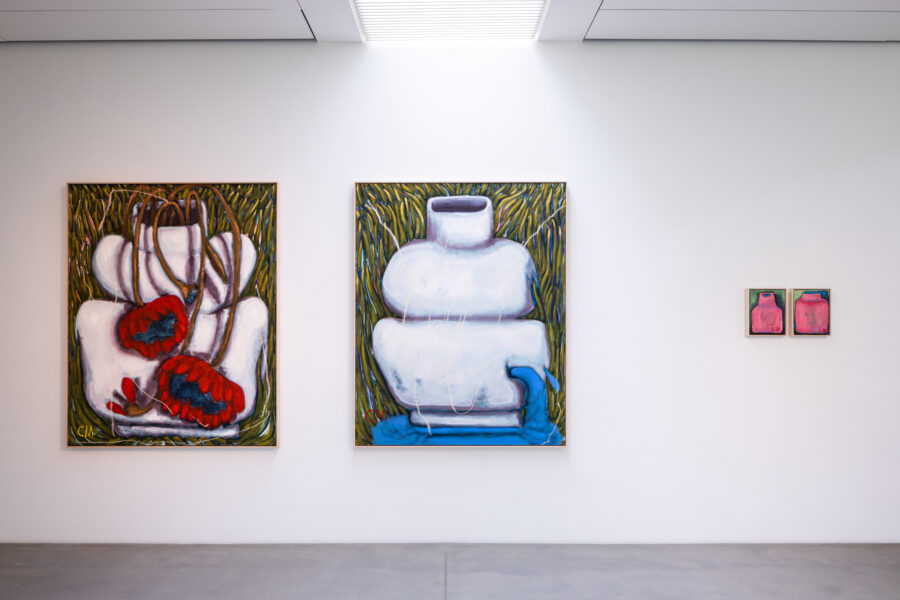 Das malerische Werk von Conny Maier besticht durch kühne und skurrile Bildentwürfe des Lebens jenseits des Gewöhnlichen und Erwartbaren. Ihre großformatigen Gemälde reflektieren die Polaritäten von Dominanz und Unterwerfung, Gleichgewicht und Instabilität sowie das Menschliche und Nicht-Menschliche. In Beautiful Disasters antwortet Maier auf Fragen der Maßlosigkeit und des grundsätzlichen Misstrauens gegenüber der Vernunft im 21. Jahrhundert mit rigoros farbigen Antworten. Figuren mit weit aufgerissenen Mündern und gallertartigen Füßen, oft mehrbrüstig und mit grotesken Kopfbedeckungen, durchwandern in lebhaften, schwungvollen Pinselstrichen ihre Leinwände. Die Kompositionen oszillieren zwischen Faszination und Abscheu und Schönheit und Schrecken. Maiers Abstraktionen bieten einen schonungslosen Blick auf das Ende des Holozäns. Die Künstlerin stellt nicht nur die Frage, was zu Ende gehen sollte, sondern auch was für ein neuer Tag anbrechen könnte.
