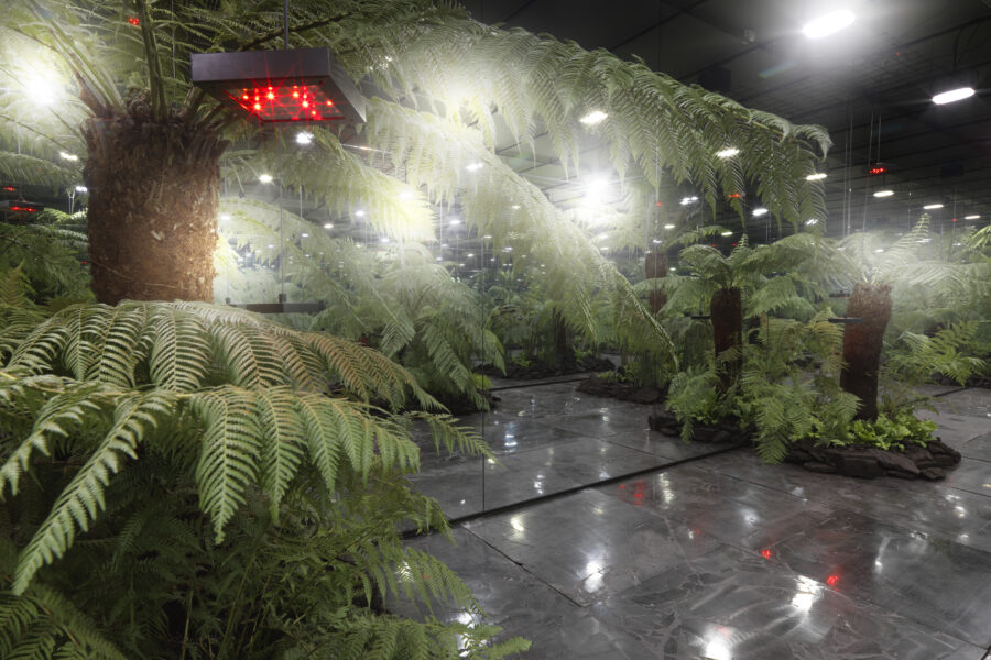 Julian Charrières Arbeiten sprechen dringende ökologische Anliegen an. Ihr Ursprung liegt häufig in Feldforschungen an Signalorten wie Vulkanen, Gletschern, Ölpalmenplantagen, unter dem Meeresspiegel und in radioaktiven Gebieten. In Controlled Burn befragt der Künstler die dunkle Vitalität von Materialien, die als Brennstoff verwendet werden: Kohle, Erdöl, Palmöl, Sonnenenergie und mehr, und vertieft so sein Nachdenken über Begriffe von Natur und unseren Platz in ihr. Charrières spekulative Visionen erstrecken sich über die versteinerten Lebenswelten vergangener geologischer Zeitalter wie auch über die von den verbrannten Resten der Exzesse der Moderne gesättigten Atmosphären. Controlled Burn hinterfragt den riskanten Umgang der Menschheit mit dem Feuer und die Rolle von Pflanzen bei zukünftigen Gestaltungen des Planeten.